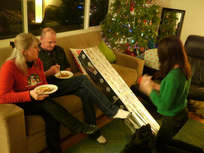 Kristi's favorites: pumpkin nut roll and presents!