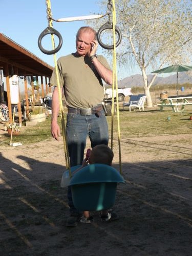Neva and Grandpa talking long distance.